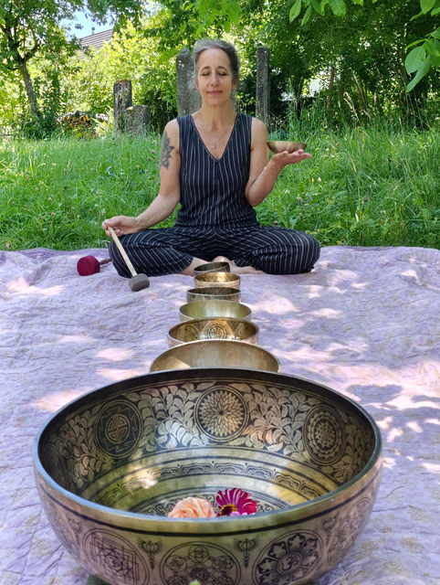 Die Klänge und Schwingungen von Klangschalen, Gongs und anderen Instrumenten können dich schnell in einen tief entspannten Zustand bringen. Das Nervensystem beruhigt sich und die Energie kommt